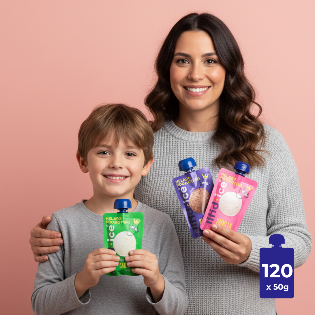 Se recomienda consultar con tu pediatra e idealmente compartir la información nutricional de Bifidice y nuestros estudios que avalan la eficacia de nuestro helado con Bifidobacterias.